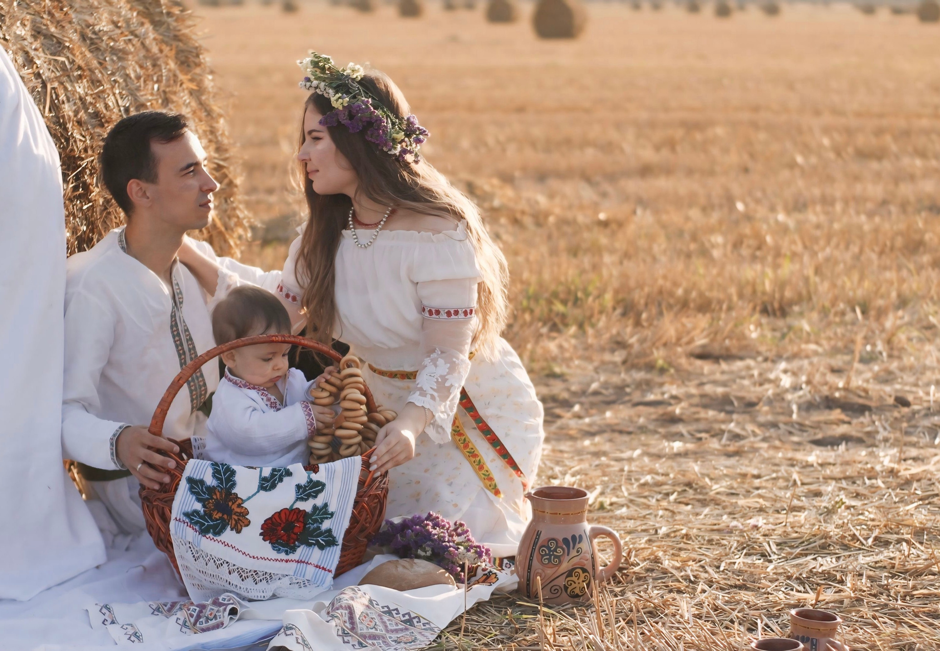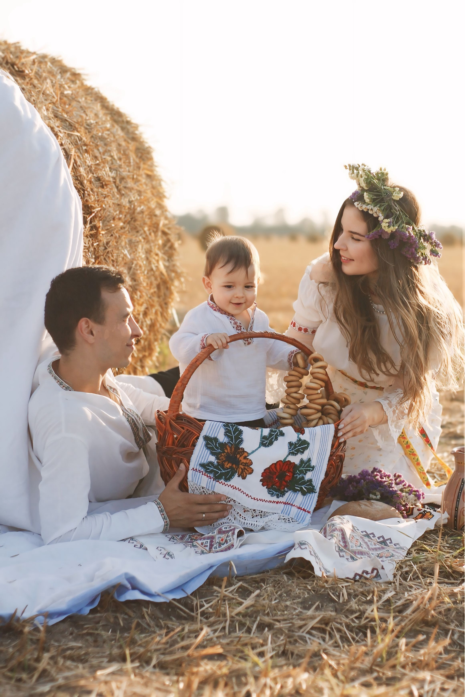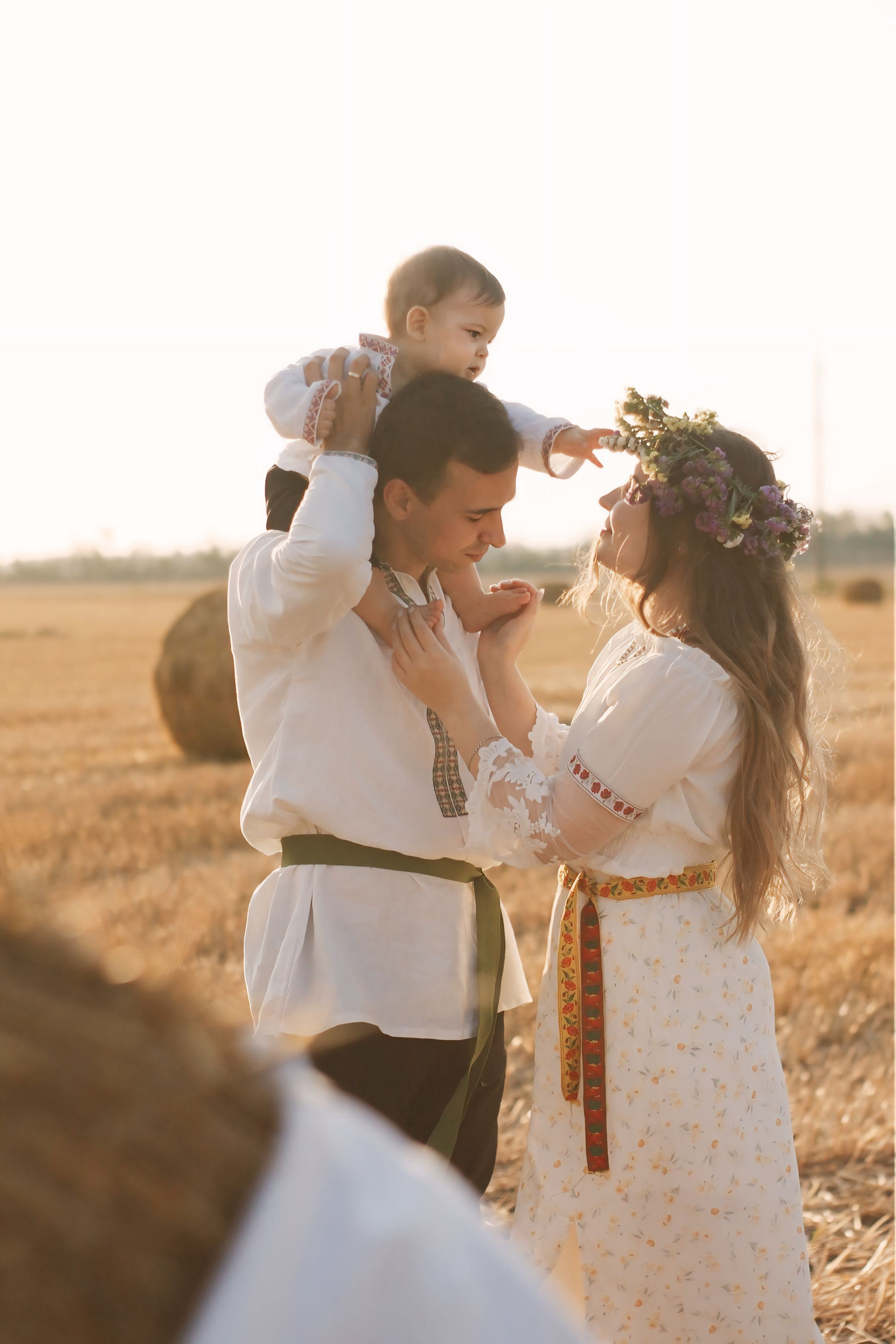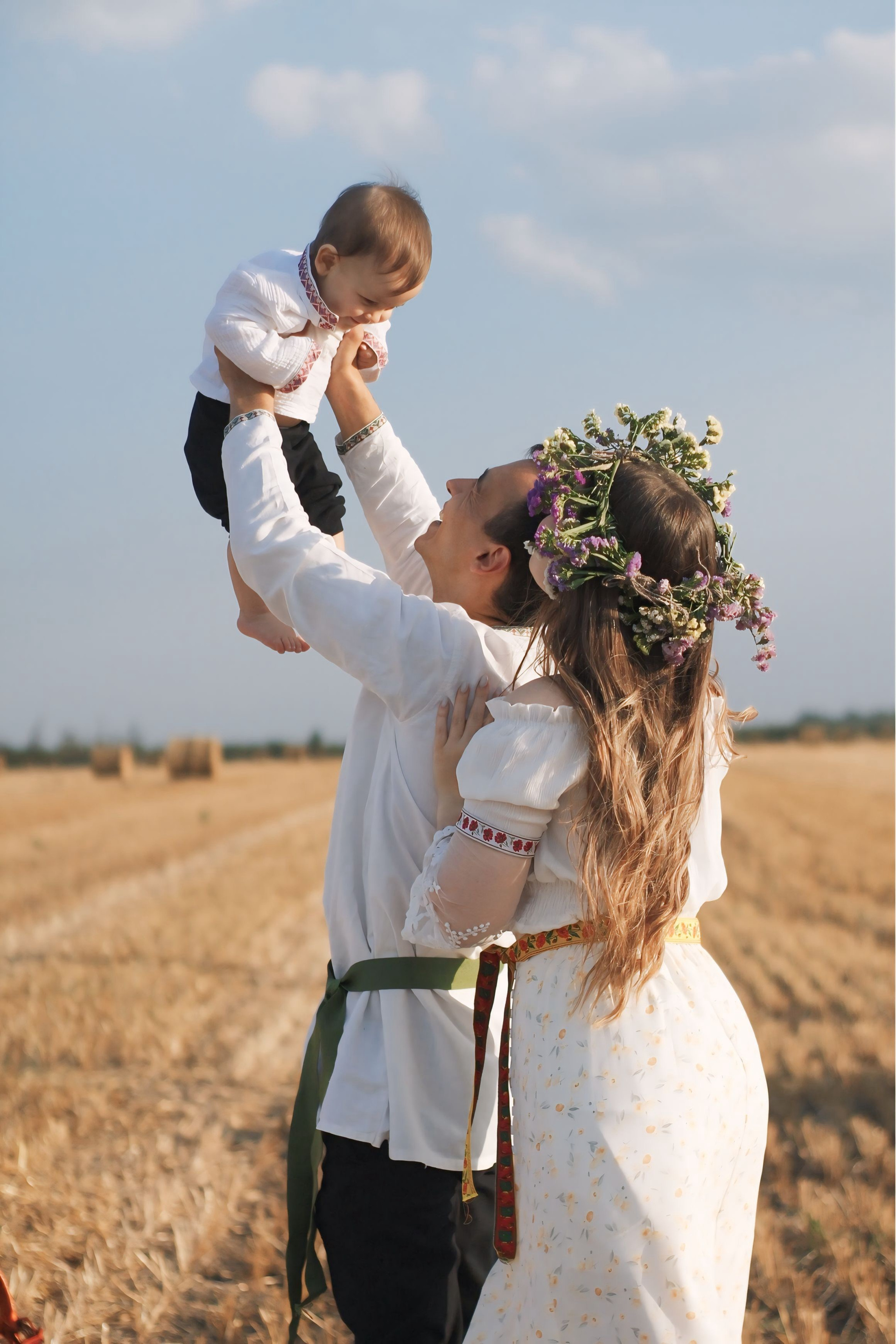 В самом сердце лета, в золотой час, когда солнце мягко опускается за горизонт, окрашивая мир в медовые тона, Ваша семья — это часть этой вечной и прекрасной картины. Пахнет скошенной пшеницей, теплой землёй и свободой. Эти стога, как тёплые крепкие объятия, хранят тепло прошедшего дня. Не в городе, а тут, на просторе, чувствуется настоящая, глубокая связь друг с другом и с этой землёй. Простое русское счастье.