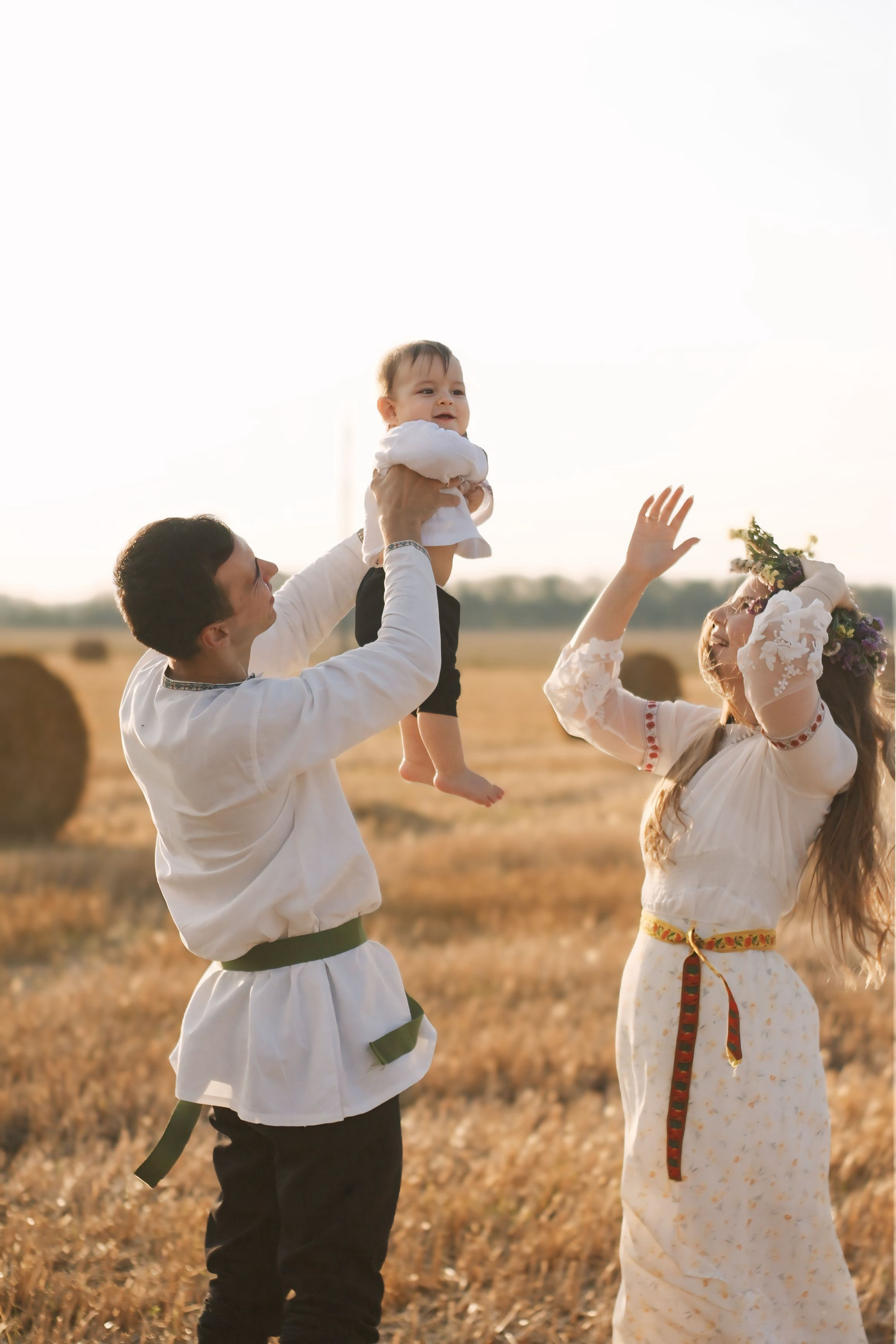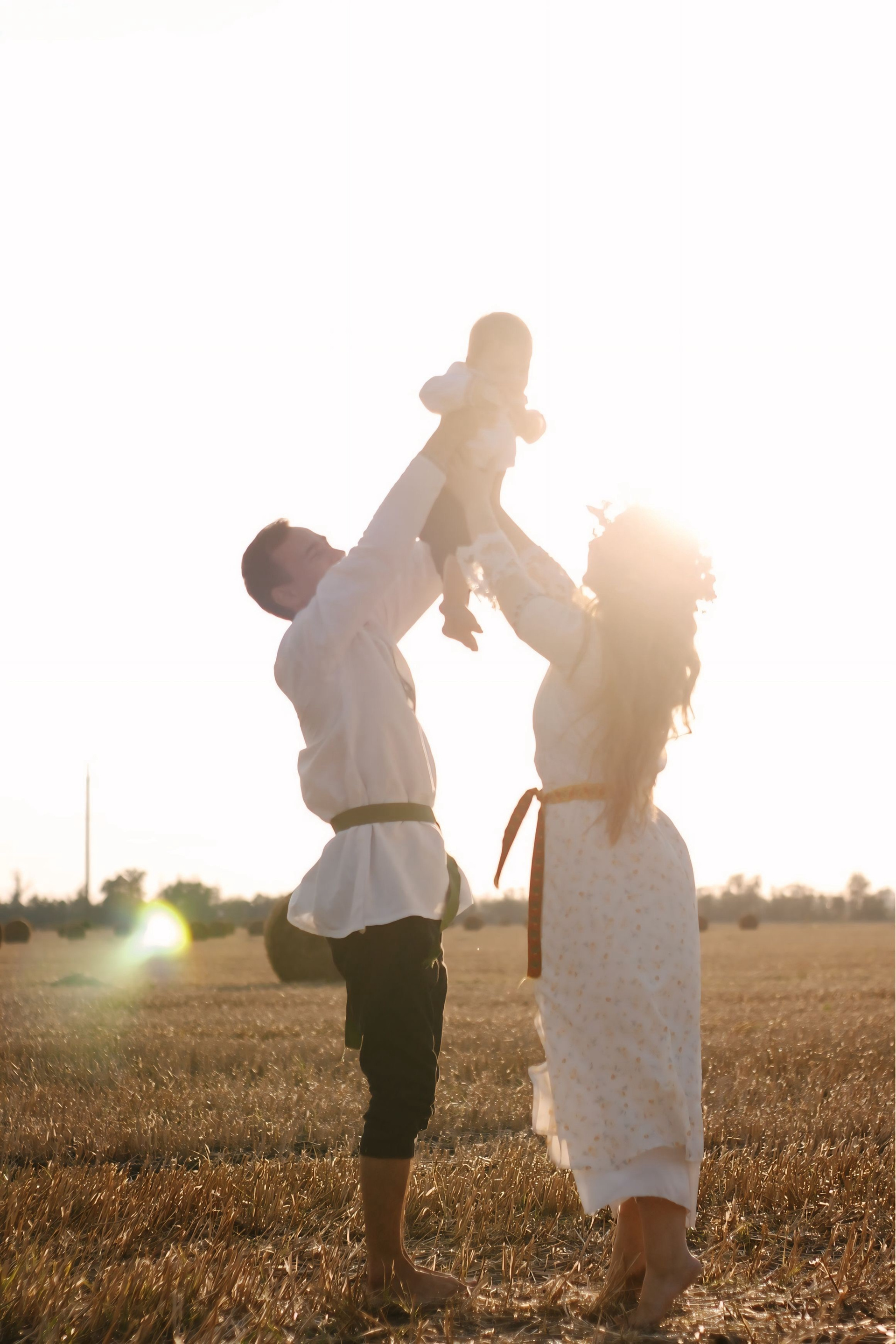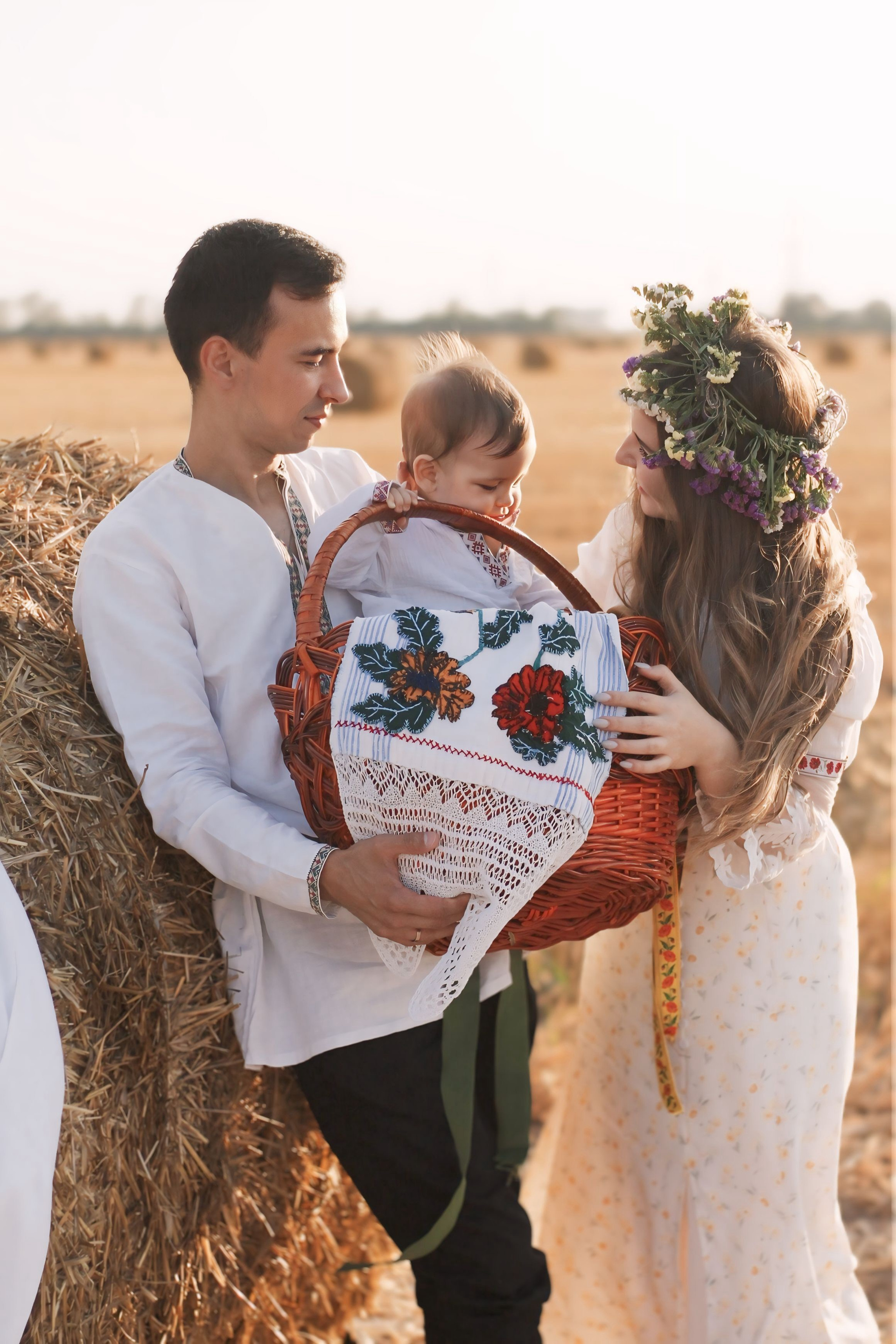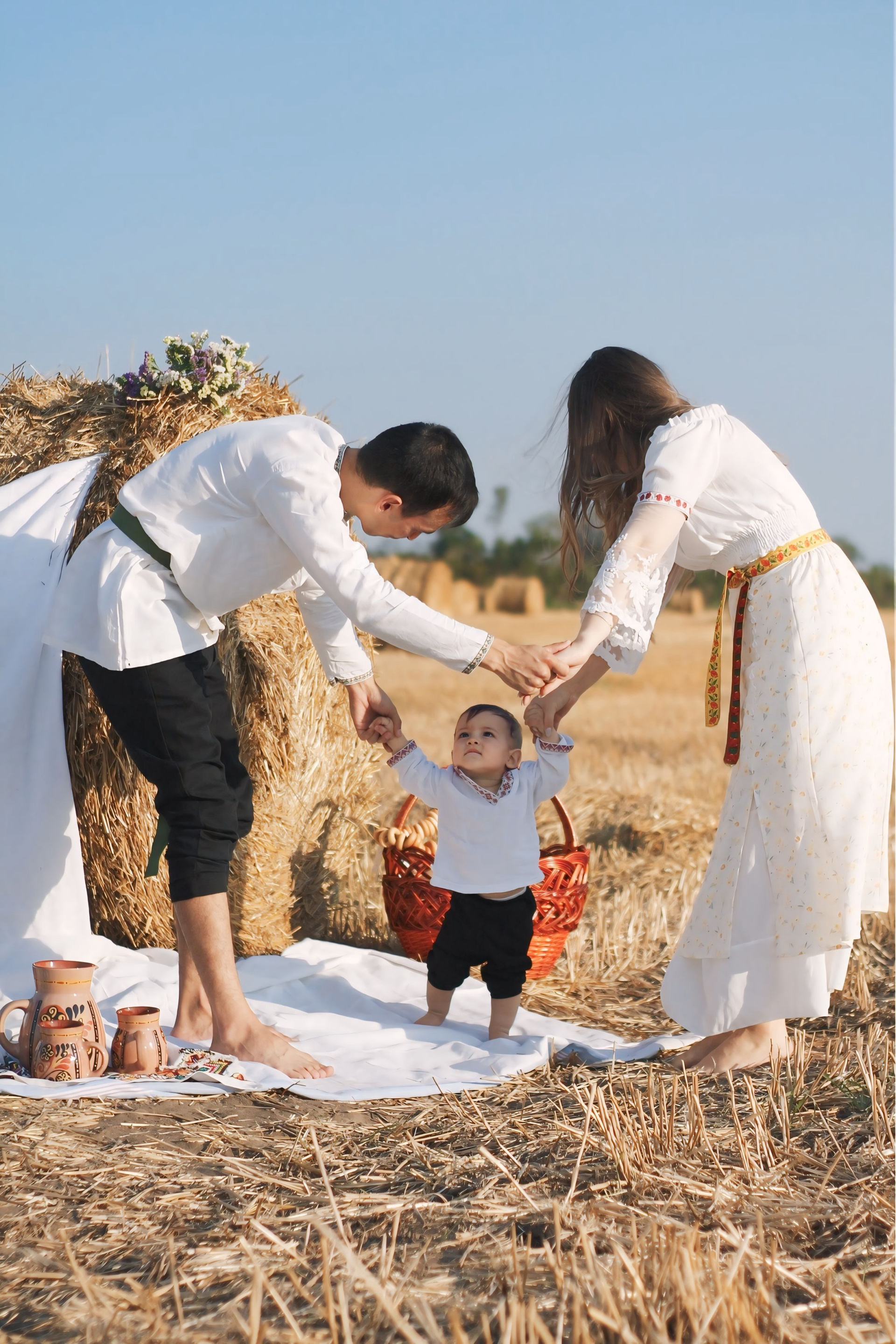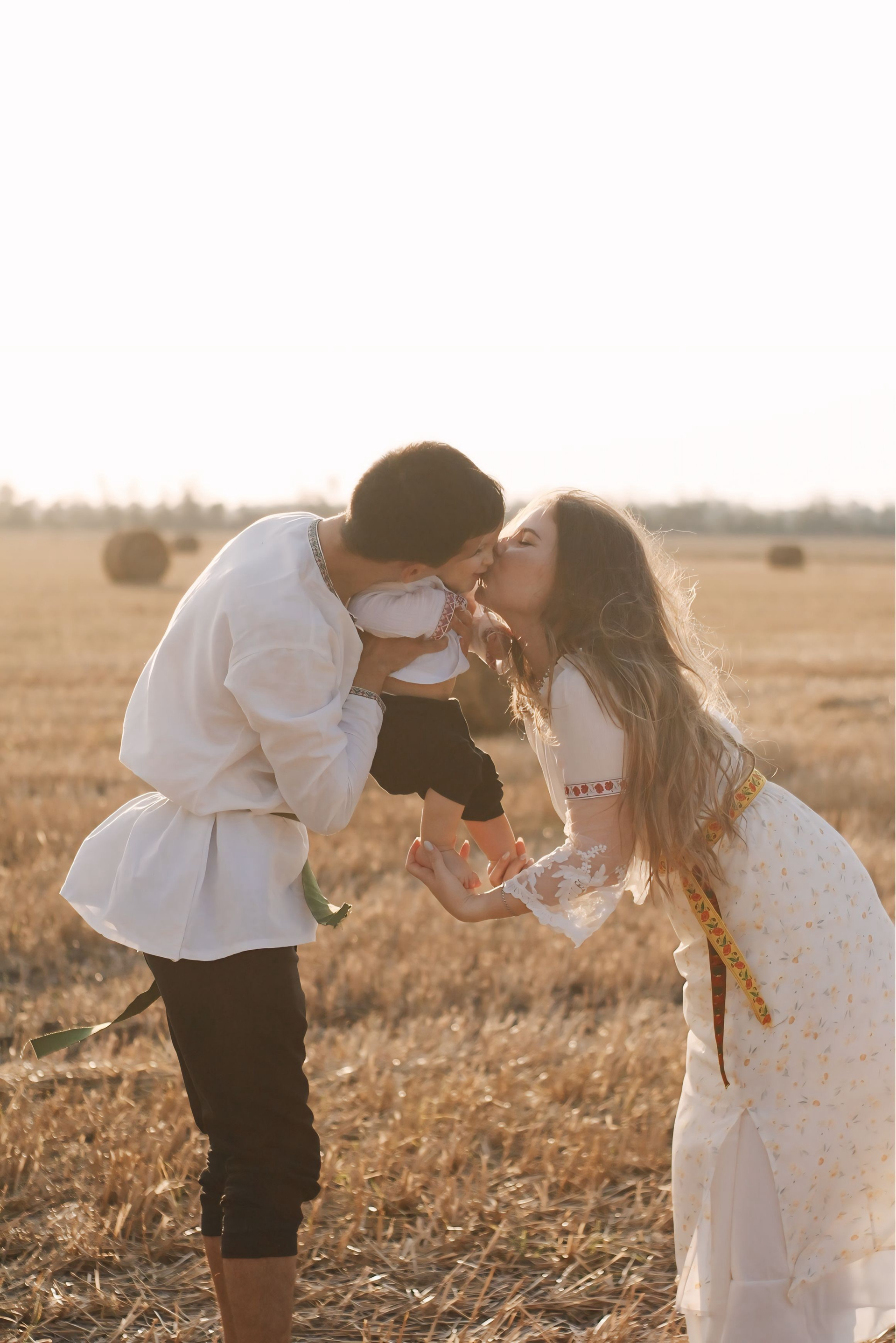 В самом сердце лета, в золотой час, когда солнце мягко опускается за горизонт, окрашивая мир в медовые тона, Ваша семья — это часть этой вечной и прекрасной картины. Пахнет скошенной пшеницей, теплой землёй и свободой. Эти стога, как тёплые крепкие объятия, хранят тепло прошедшего дня. Не в городе, а тут, на просторе, чувствуется настоящая, глубокая связь друг с другом и с этой землёй. Простое русское счастье.
