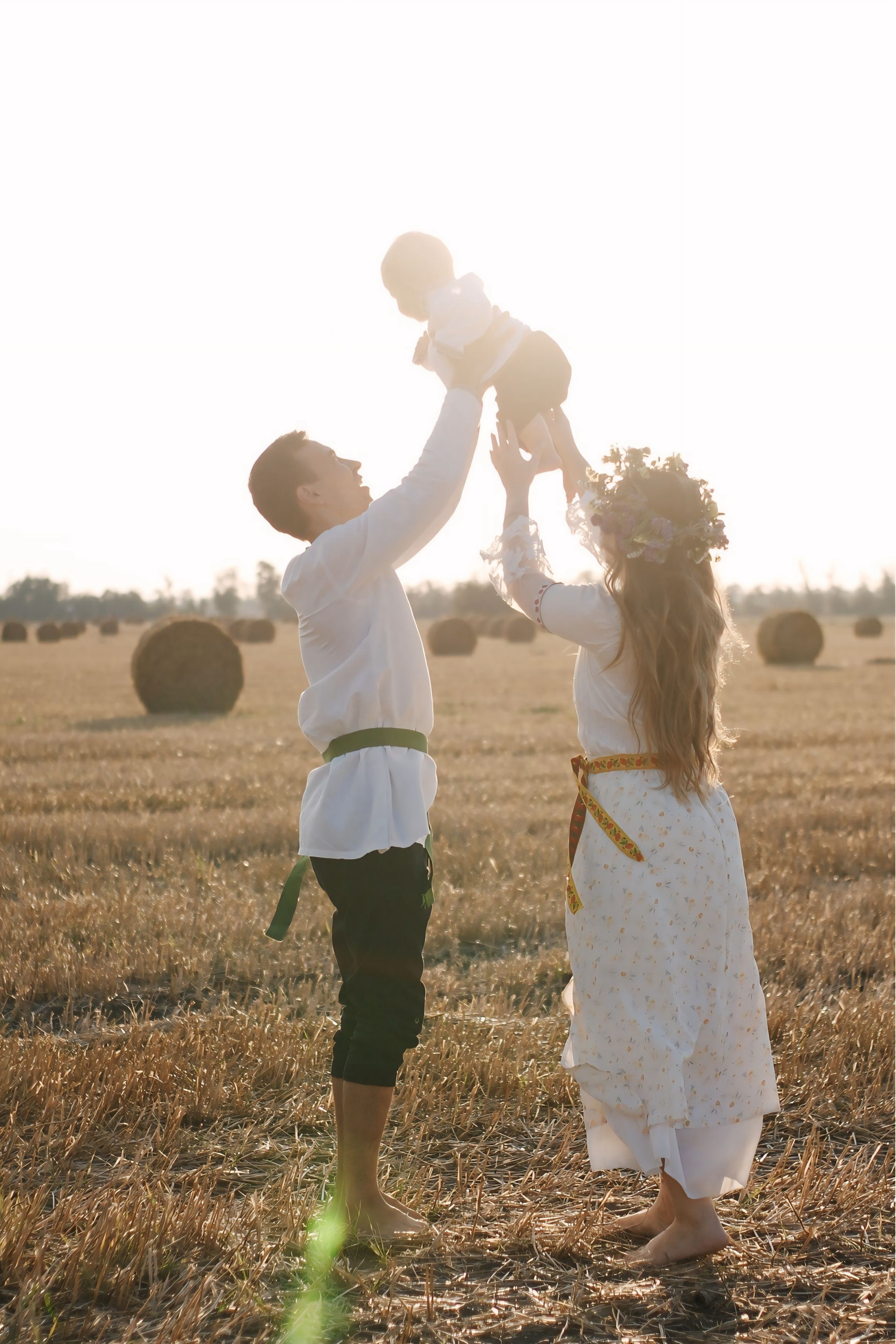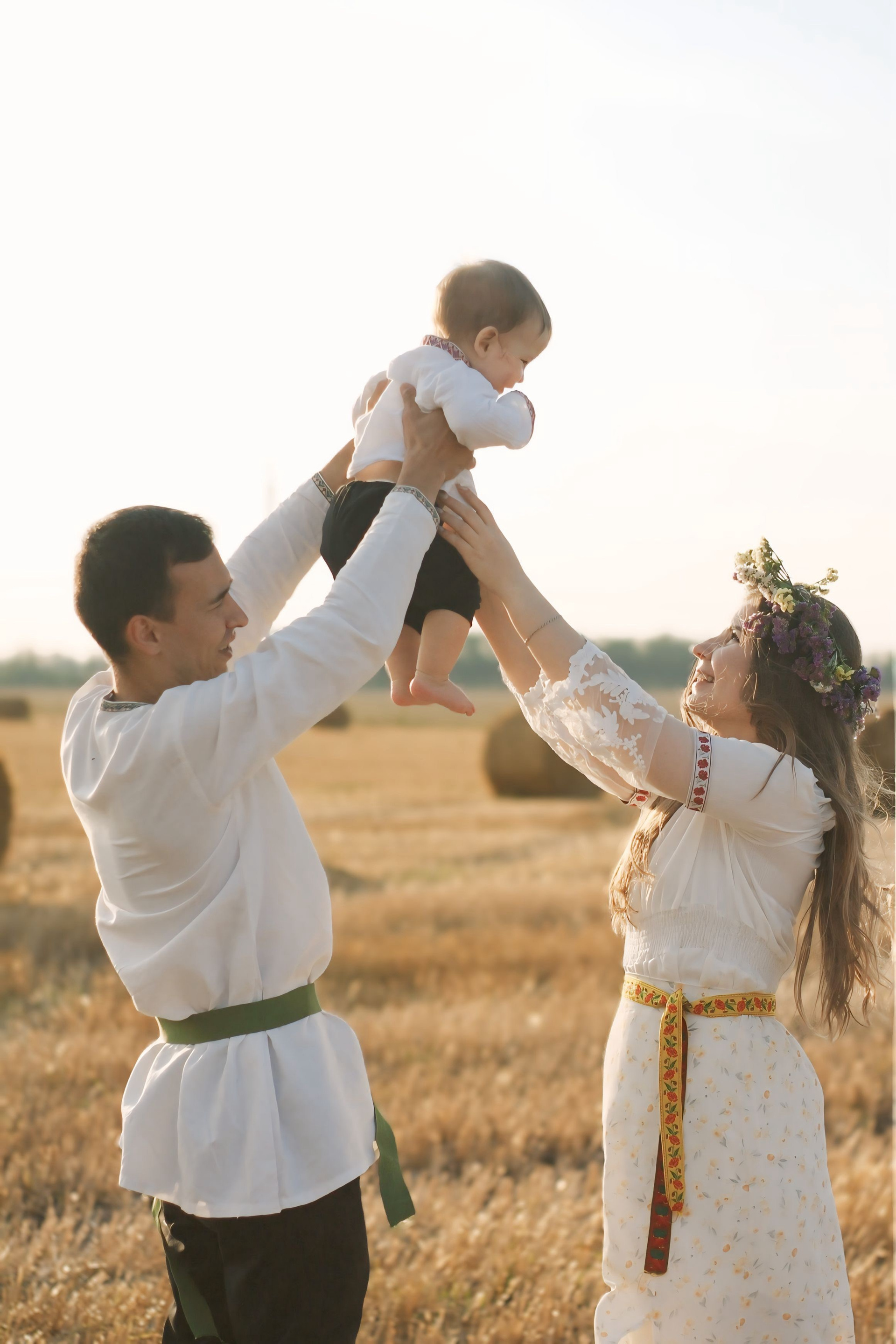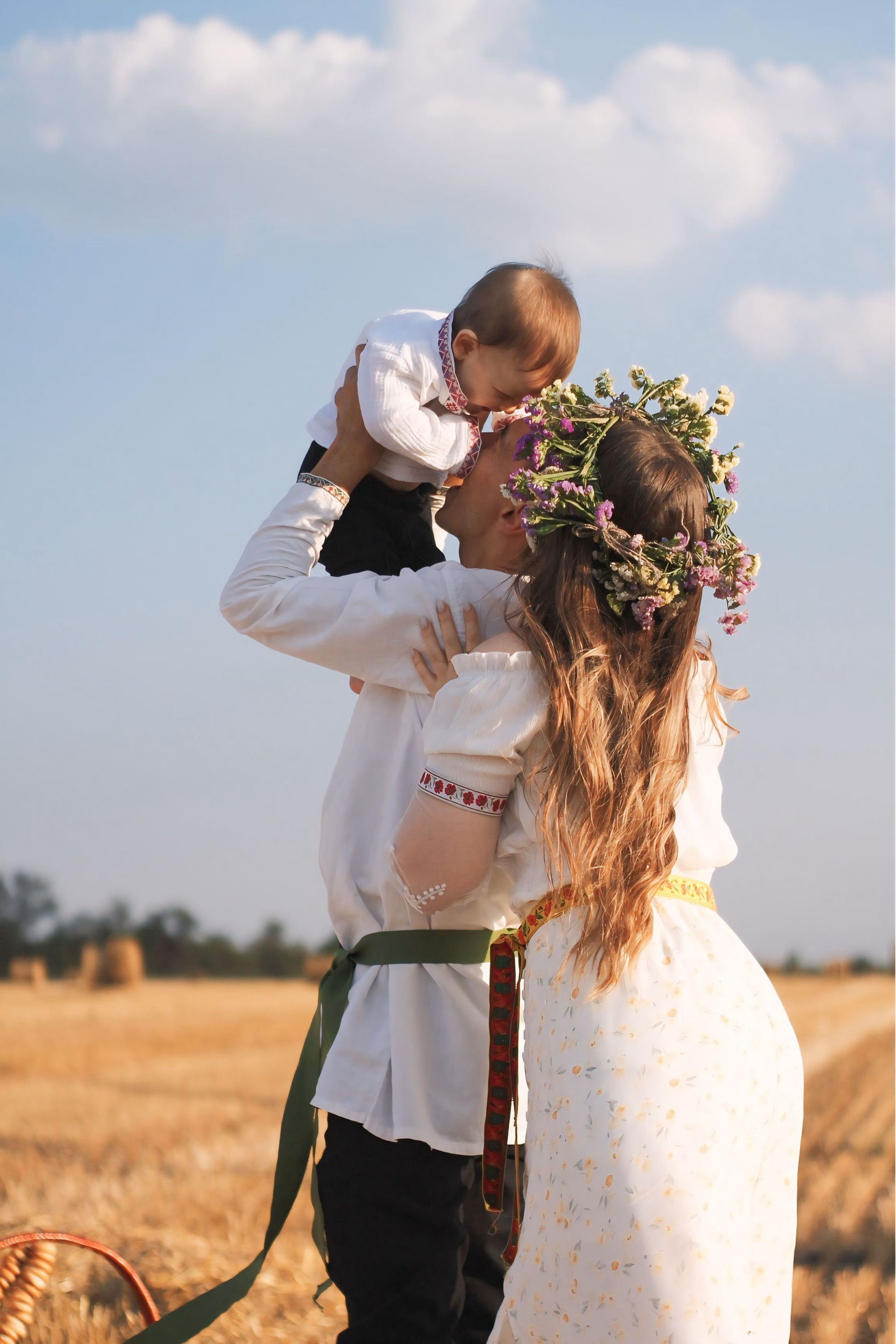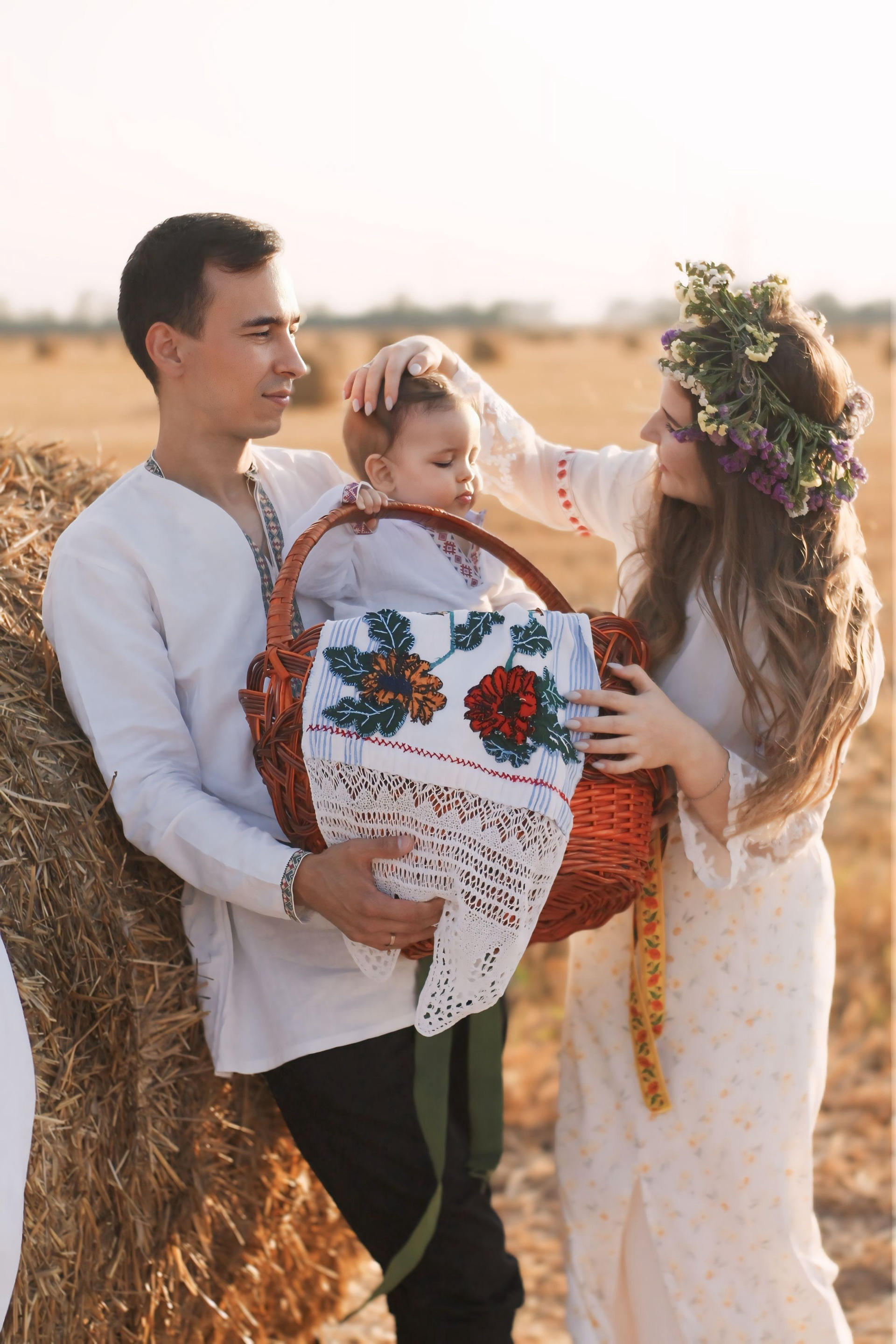 В самом сердце лета, в золотой час, когда солнце мягко опускается за горизонт, окрашивая мир в медовые тона, Ваша семья — это часть этой вечной и прекрасной картины. Пахнет скошенной пшеницей, теплой землёй и свободой. Эти стога, как тёплые крепкие объятия, хранят тепло прошедшего дня. Не в городе, а тут, на просторе, чувствуется настоящая, глубокая связь друг с другом и с этой землёй. Простое русское счастье.